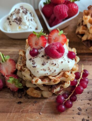 In a separate bowl, whip the cream and powdered sugar until stiff peaks form.